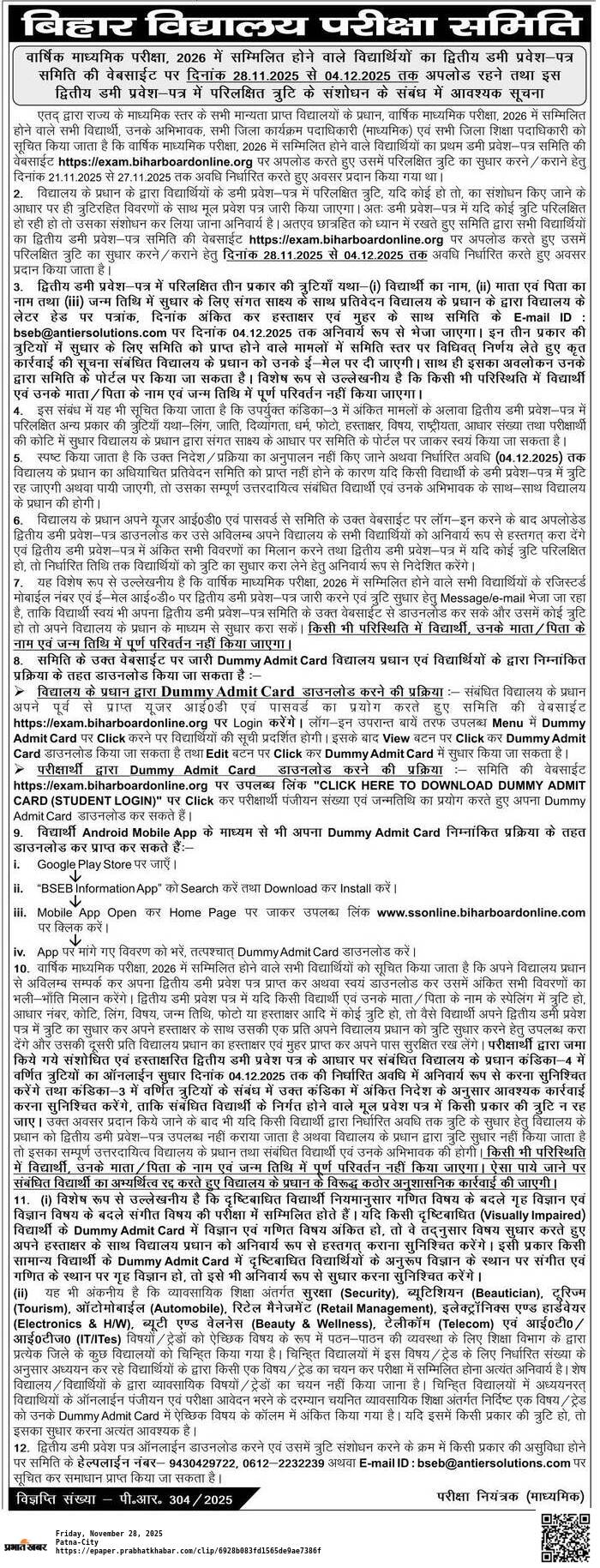 Dummy Admit Card Release21 – 27 November 2025